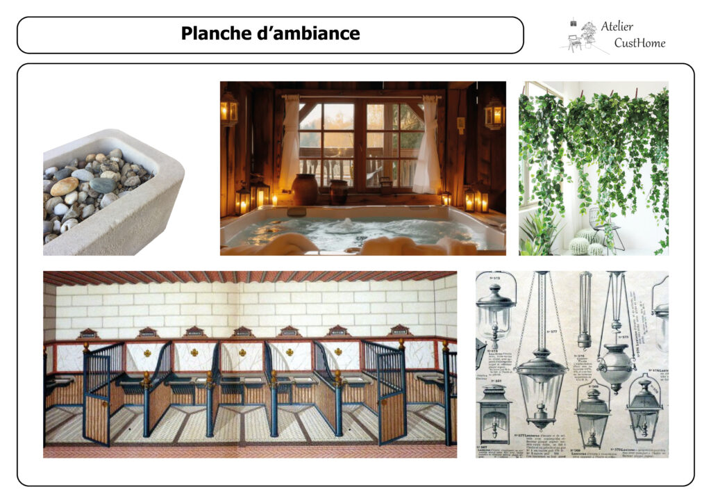 PROJET ECRIN – Création d’un jacuzzi dans une ancienne écurie – mélange d’Ecuries Royales et d’ambiance Chalet.